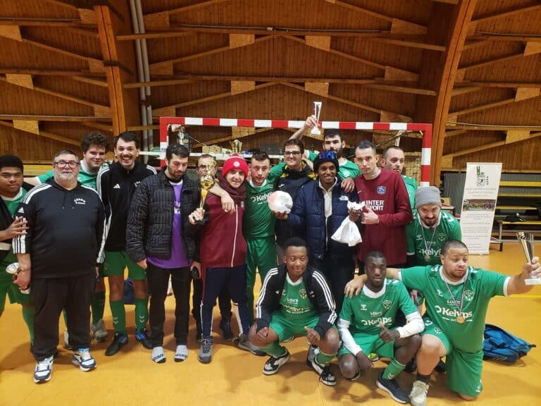 En Sport Adapté, le CSADN en partenariat avec les handi supporters de l’ASSE a organisé ce samedi dans la salle omnisports Plaine Achille son 6ème tournoi régional futsal. Avec 22 équipes mixtes et 139 participants répartis en 3 niveaux, cette manifestation a été une totale réussite. 5 départements étaient représentés avec des joueurs de Savoie, d’Ardèche, du Rhône, de la Drôme et de la Loire. L’équipe d’Annecy gagne le tournoi en poule 1 et en poule 2 et c’est une équipe de Lyon qui sort victorieuse en poule 3. Belle prestation des jeunes du club qui terminent finalistes et remporte donc la seconde place du tournoi principal. André Durand, le responsable de la section est fier de ses joueurs et il remercie toux ceux qui ont fait de cette journée une fête « Je remercie le district et tous les sponsors pour leur soutien. L’ASSE et la ville de saint Etienne sont des alliés précieux et tous reconnaissent que le football est un formidable outil éducatif, de mixité sociale et est porteur de valeurs de fraternité et de respect. Au club, nous favorisons l’inclusion des sportifs en situation de handicap. Nous avons 34 licenciés dont 6 féminines et avec mes adjoints, Patrick Escot et Jean Luc Guillot nous voulons donner le droit d’accès au football à tous et leur permettre de prendre du plaisir sur les terrains et au sein du club ».